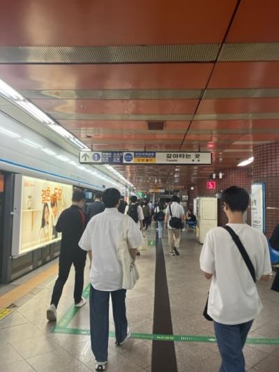 やはり乗換ができる駅は広いですね!2番線から3号線に乗り換えするときに利用しましたが、自動販売機に防弾少年団(BTS)がいてテンションが上がりました!2ヶ月前に別の駅でも見かけましたが、また見れたので嬉しかったです!!笑