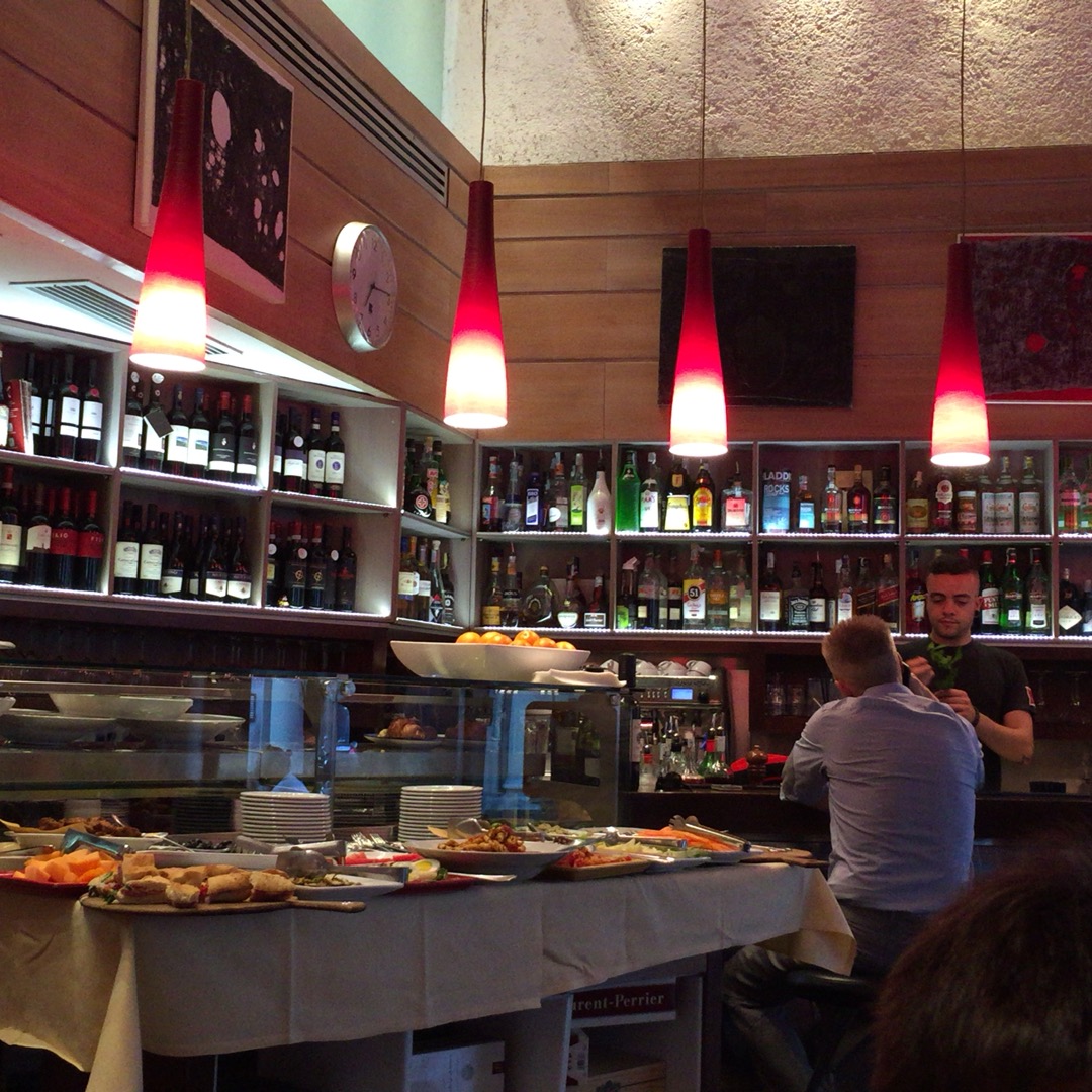 カウンターに並ぶ軽食が食べ放題なカフェやバールがあります。