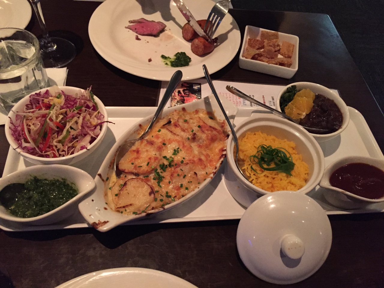 私たちは2人で『Mixed Grill』を一皿注文。付け合わせにはマッシュポテトと温野菜にしました。