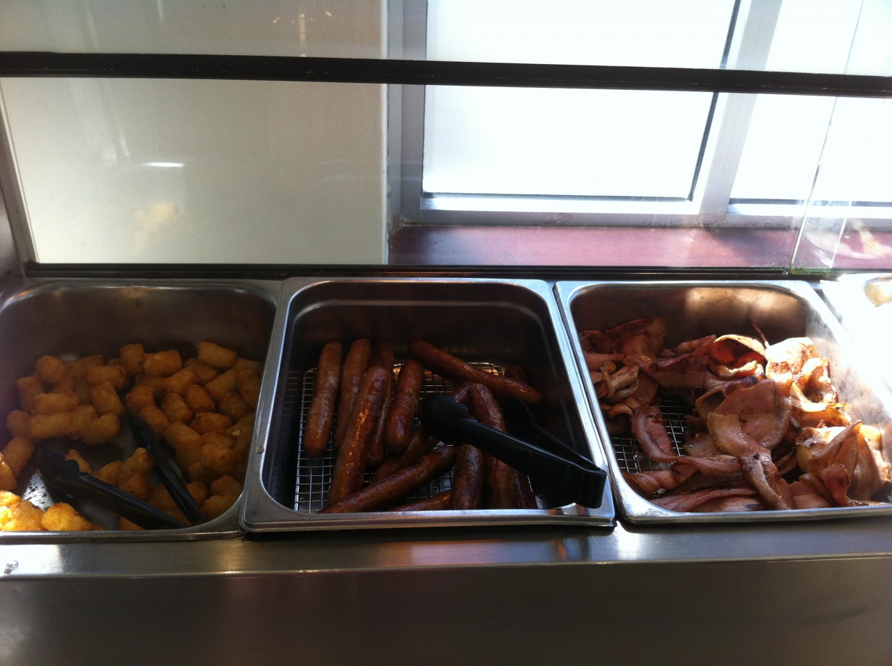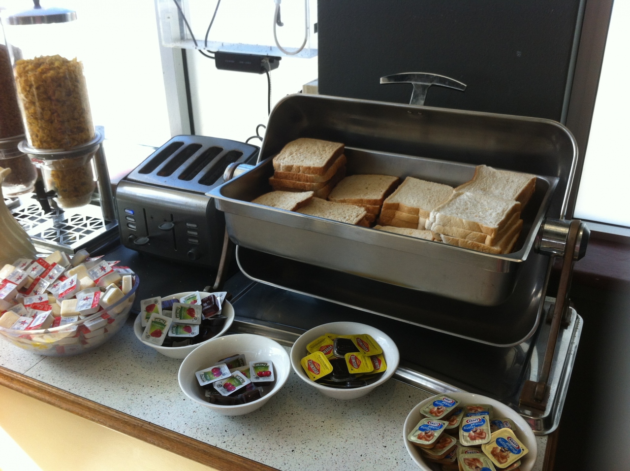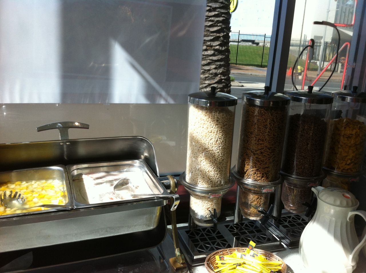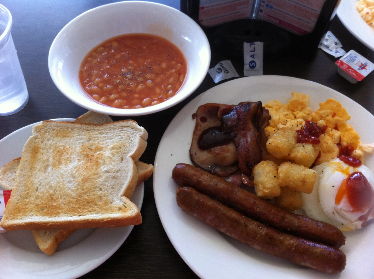 10ドルでベーコンやソーセージ、ベイクドビーンズや卵料理、パン、シリアルのバッフェ形式になっていてさらに紅茶かコーヒーも付いています。
