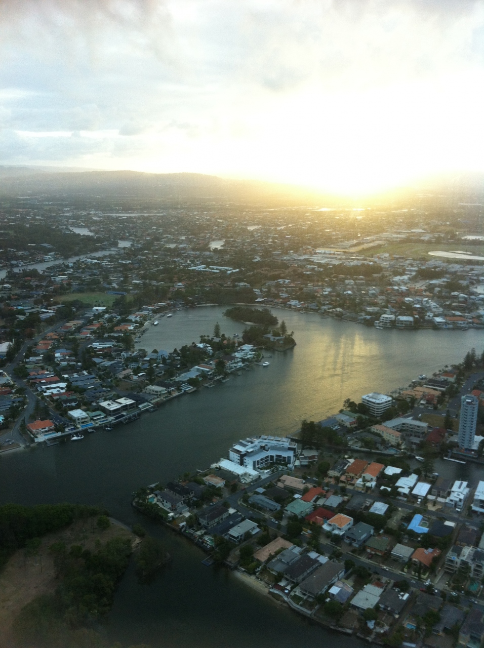サーファーズのビル群に夕日が差し掛かりとても綺麗でした。