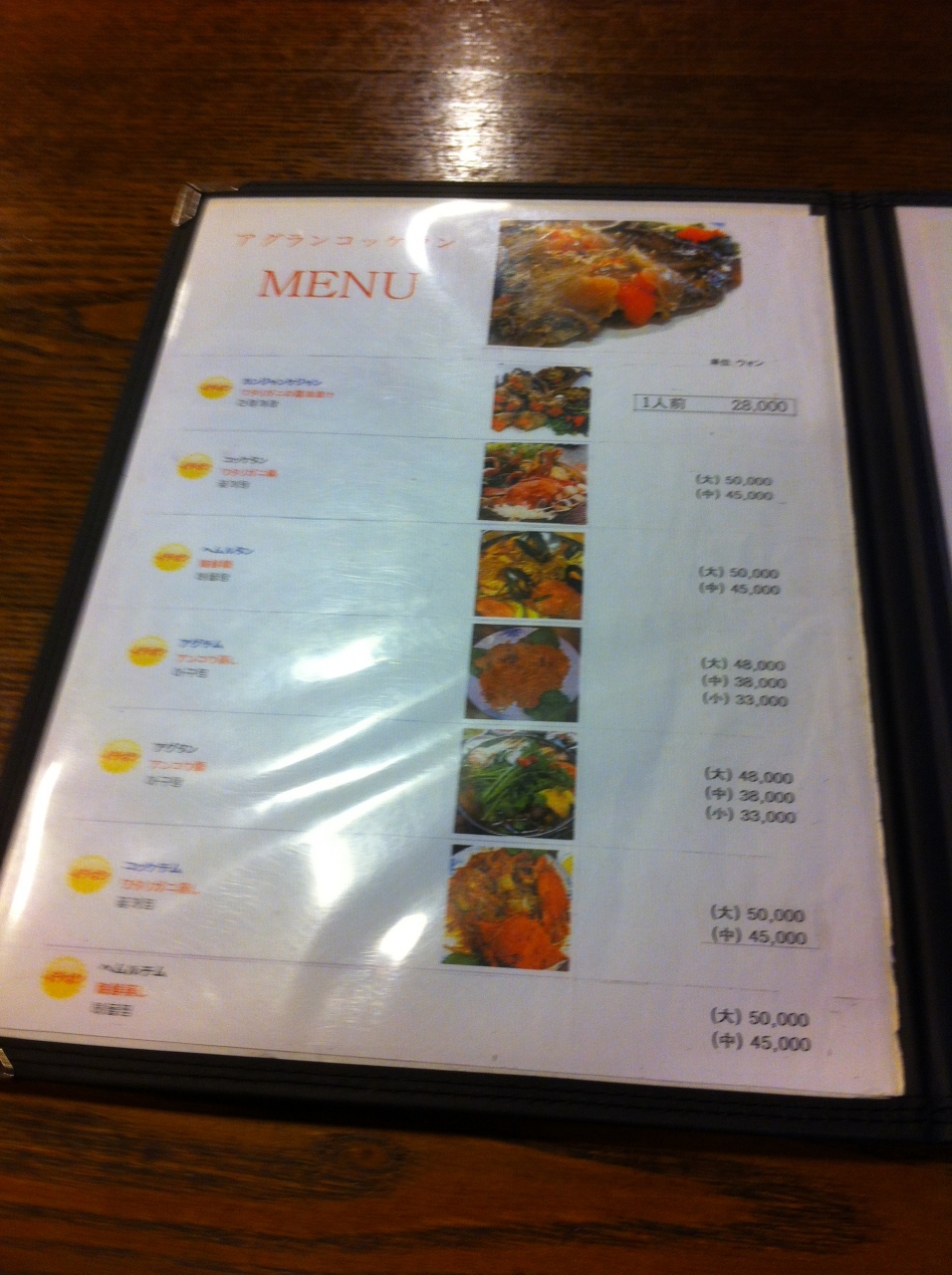メニューを見るとカンジャンケジャン1人前28000ウォン・・・高い!