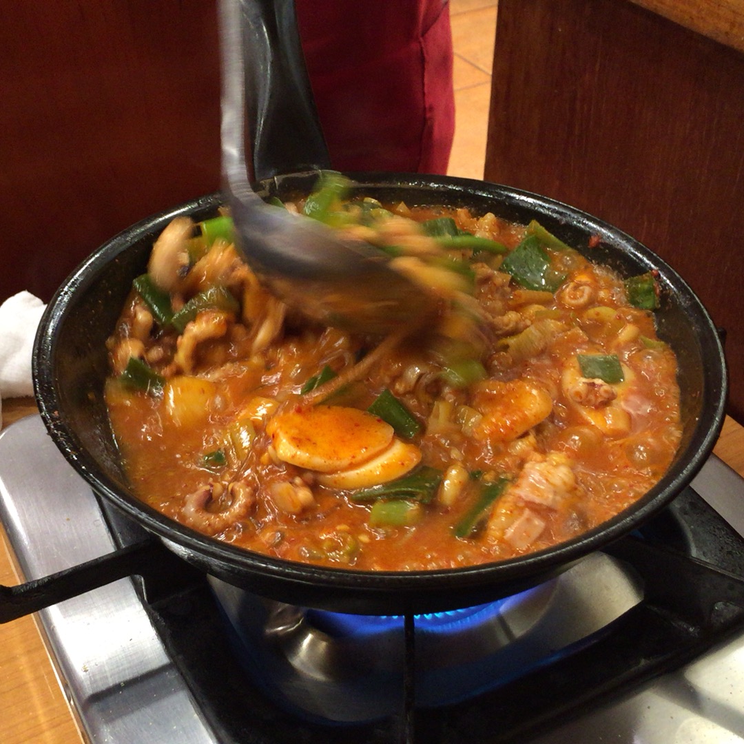 野菜と共に辛そうに味付けされたチョッパル等を注文されていたので