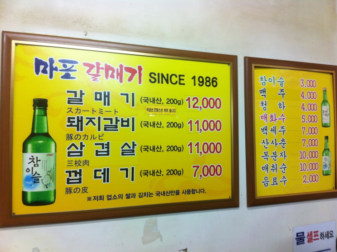 この日はカルメギサルとテジカルビを頂きまして、焼酎を2人で3本飲んでお会計は32000ウォンとCP抜群です。