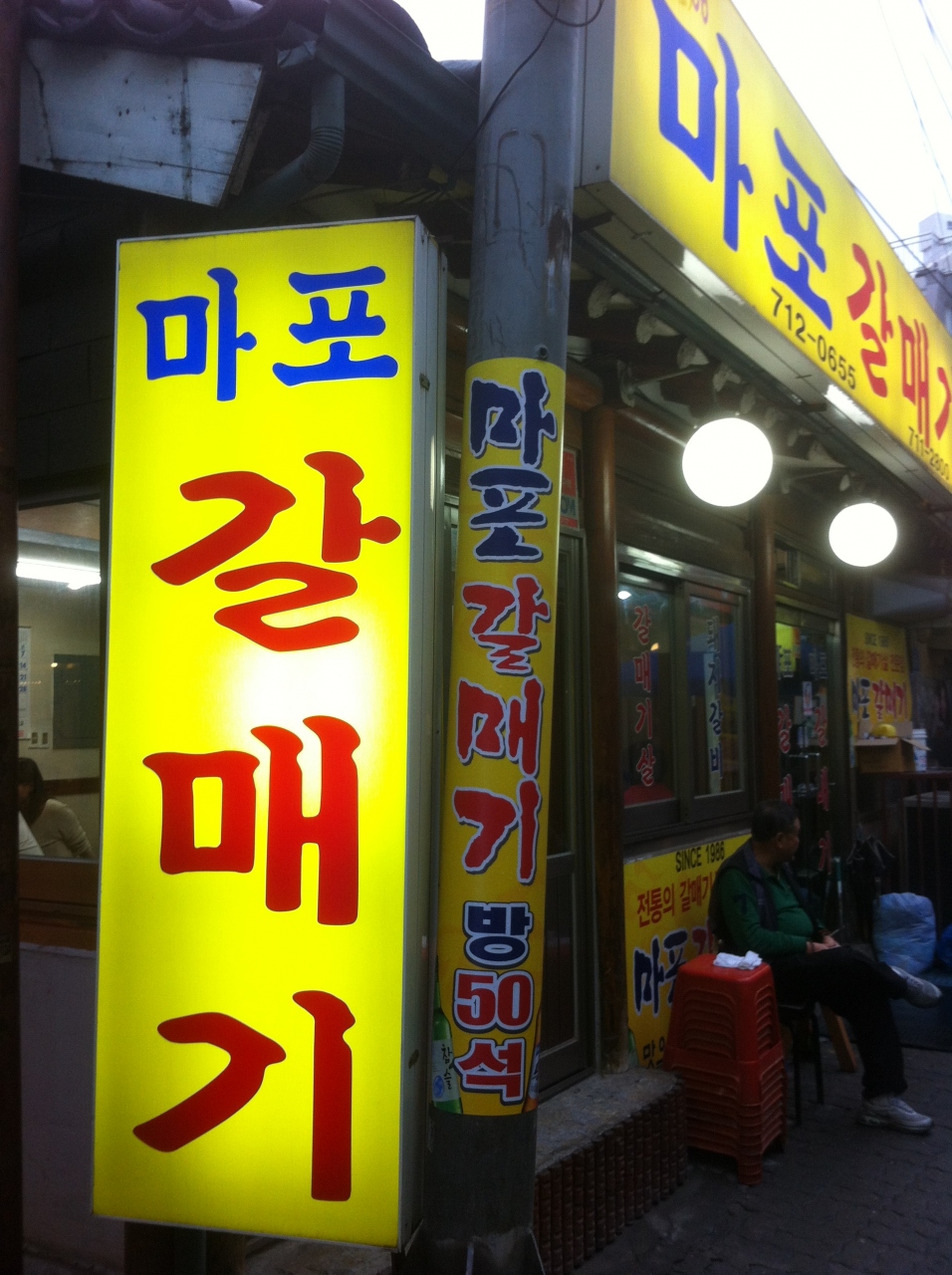 こちらは地下鉄5号線、孔徳駅から徒歩5分位のカルメギ屋さんです。