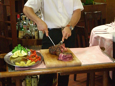 こちらのビステッカは大きなお肉の塊を焼いてきて目の前で取り分けて
