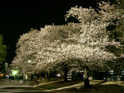 写真は話題の椰子の木から程近い少年野球場横の夜桜です。- 旅行時期
