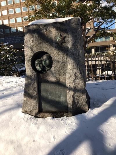 北海道札幌市の札幌市役所前にひっそり佇んでいる、「札幌市立中央創成小学校の跡」の記念碑です。