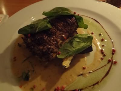 グリルした牛肉料理とビール、カフェのみのオーダーでしたが支払額は5000円ほど。