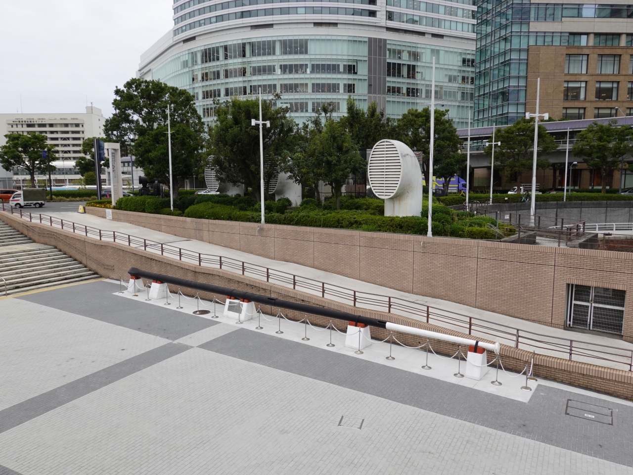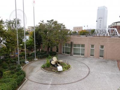 日本丸メモリアルパークの一画、日本丸訓練センターの中庭のような場所に日本丸のスクリュープロペラが設置されています。国道133号線(栄本町線)の歩道からは眼下にその全景を一望することが出来ました。日本丸の大きさからはやや小さいと感じましたが、予備動力としてのものだからなのでしょうか。