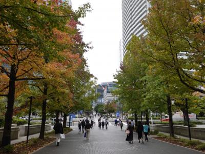 日本丸メモリアルパークから宿泊先の「ザ・カハラ」に向かう際、グランモール公園を通りました。みなとみらい地区の中でも都会的要素を取り入れた公園としては屈指の存在だと思います。あいにくの曇りがちな天気でしたが、11月初頭で木々の葉が色づき始めており、散策が楽しく感じられました。
