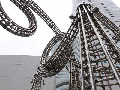 ランドマークタワーとクイーンズスクエア横浜の間のスペースに、斬新で巨大なオブジェが設置されています。1994年制作されたもので「たなびく雲」をイメージした作品ということですが、個人的には近未来のジェットコースターのように思えます。何度見てもインパクトを感じる作品です。