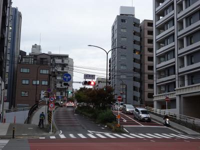 11月の初旬、街路樹のいちょうの葉がやや色付く程度で、期待していた紅葉にはほど遠い光景でした。あいにくの曇天もあり、道沿いのビルの無機質さだけが感じられ、少し残念な光景でした。