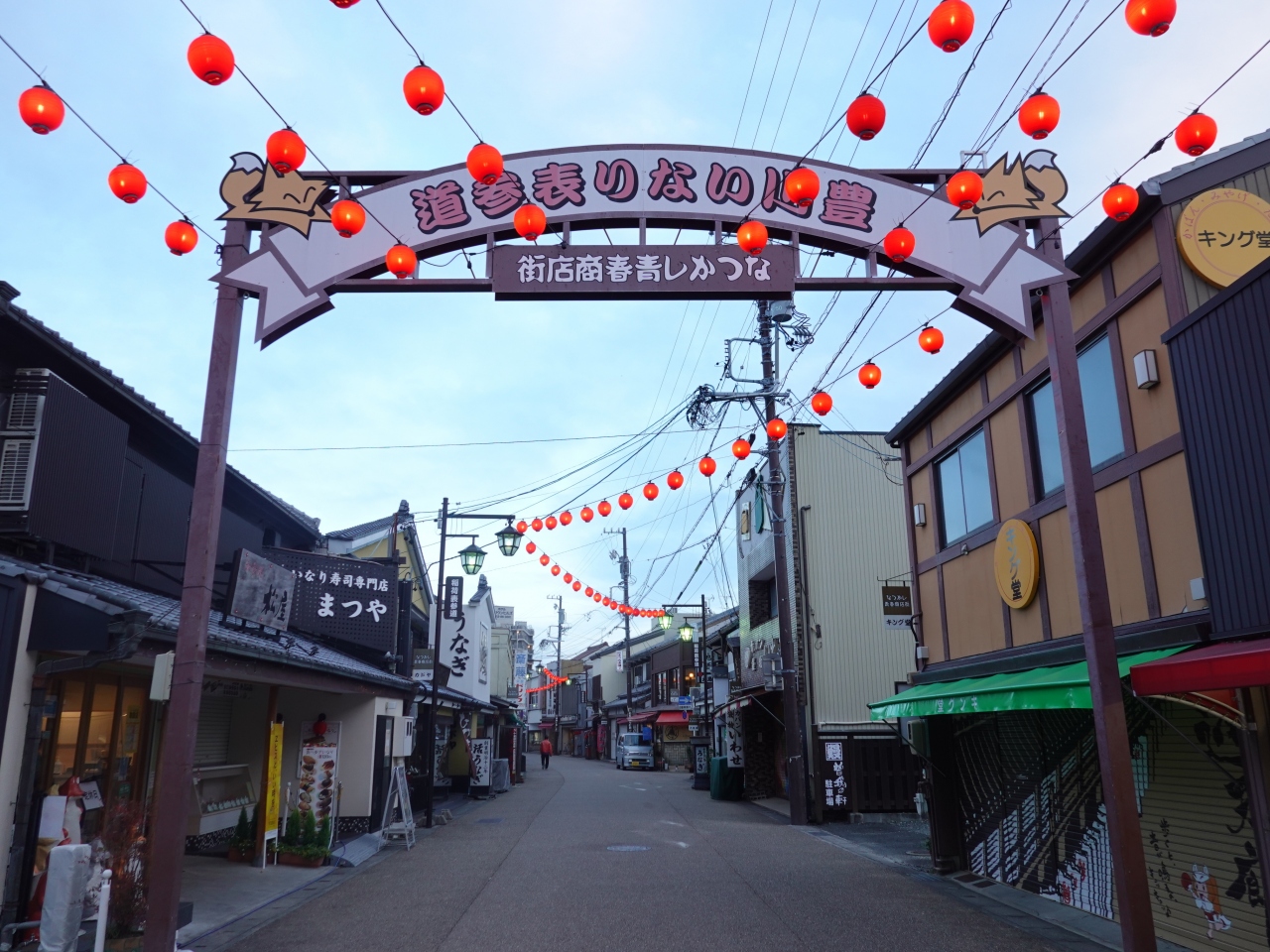 豊川稲荷の総門に至る表参道沿いは数々の土産店や飲食店が軒を連ねており、昔懐かしい雰囲気が感じられて歩いていて楽しかったです。コロナの影響もあり道行く人が少ないのは残念でしたが、印象に残る光景でした。豊川稲荷参拝の際には、参道の散策にも時間をとることをお薦めしたいです。