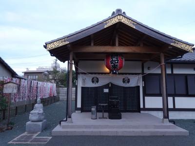 豊川稲荷の表参道沿いに薬師如来堂に至る「入口」があります。狭い路地の両側に幟が並んでおり奥に進むと本堂があります。近年建て替えられたものと思われ、想像したよりも新しく大きな建物でした。本堂の脇に小さな仏様が鎮座しているのが印象的でした。