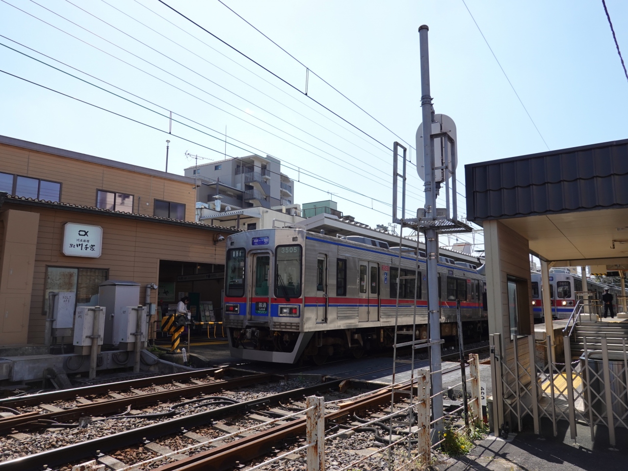 京成金町線は、京成高砂駅と金町駅を結ぶ2.5キロの短い路線で、途中駅は柴又駅のみです。柴又駅から帝釈天の参道までは徒歩数分で、帝釈天参拝時には非常に便利です。また柴又駅前には、「フーテンの寅像 と見送るさくら像」もあり、観光気分を盛り上げてくれます。