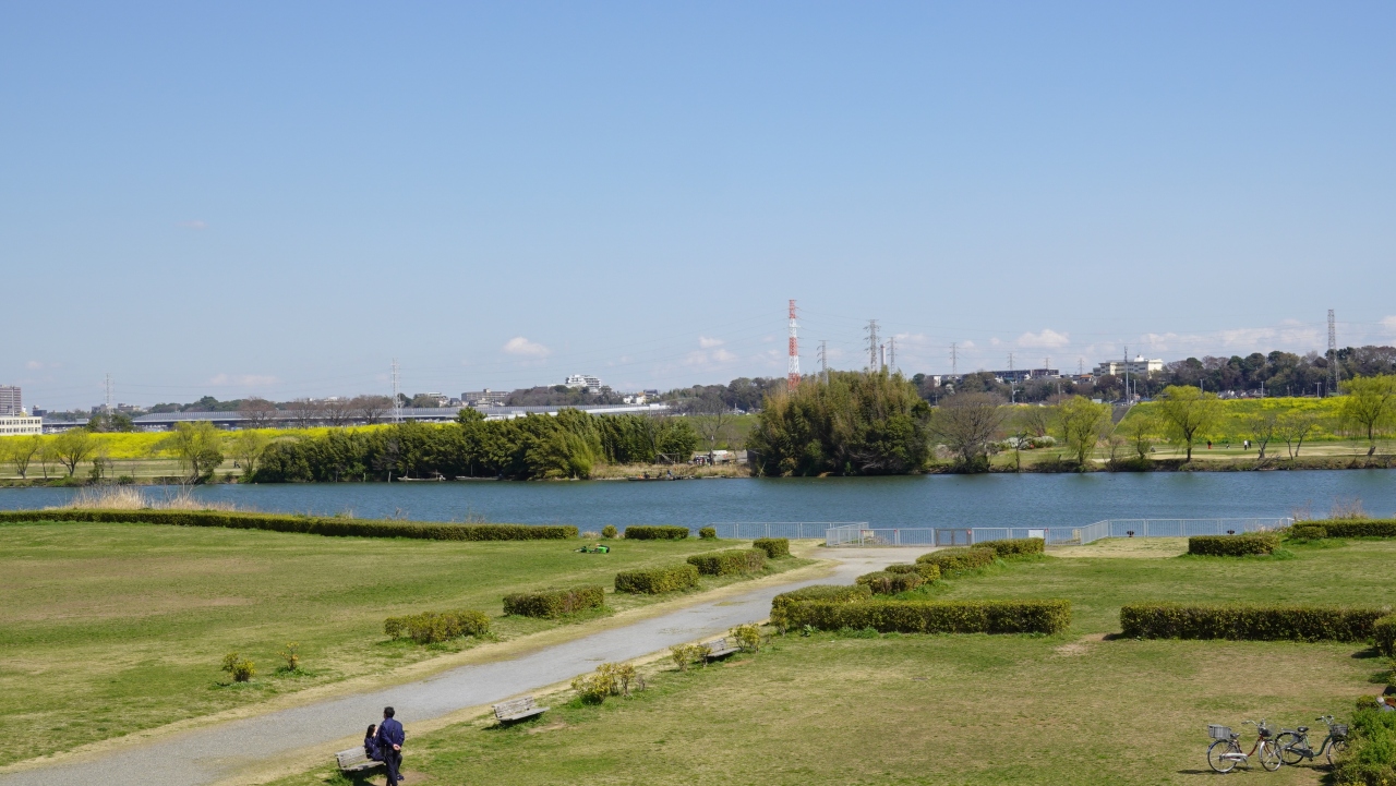 柴又帝釈天を参拝したあと、江戸川堤まで足を伸ばしました。3月中旬の快晴の日で、河川敷の芝の緑、対岸に咲く菜の花の黄色、更には空の青と江戸川の青という最高のコラボレーションが見られました。人も少なくとても快適な時間でした。