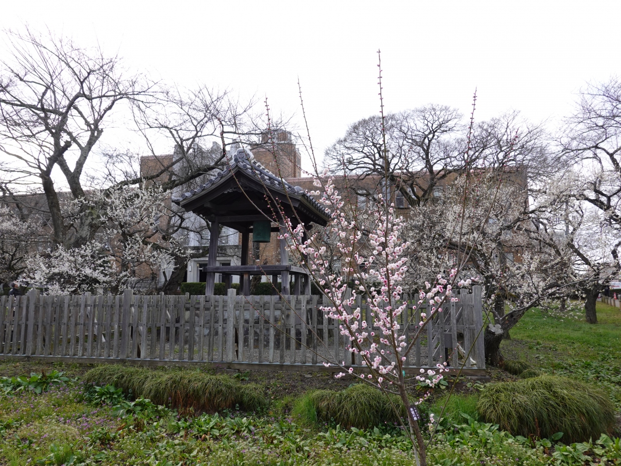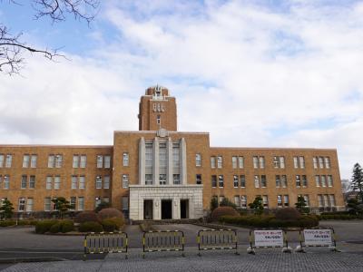 弘道館公園の西に隣接して建つ低層階のレトロ建築が「旧茨城県庁」で、現在の三の丸庁舎です。レンガ造りの外観が印象的な重厚な建物で昭和5年に建てられました。テレビドラマなどでもしばしばロケに使われてる人気スポットです。間口が広すぎて広角レンズを用いてもワンフレームにおさめることが困難ですが、青空を背景にした姿は美しいのひと言でした。
