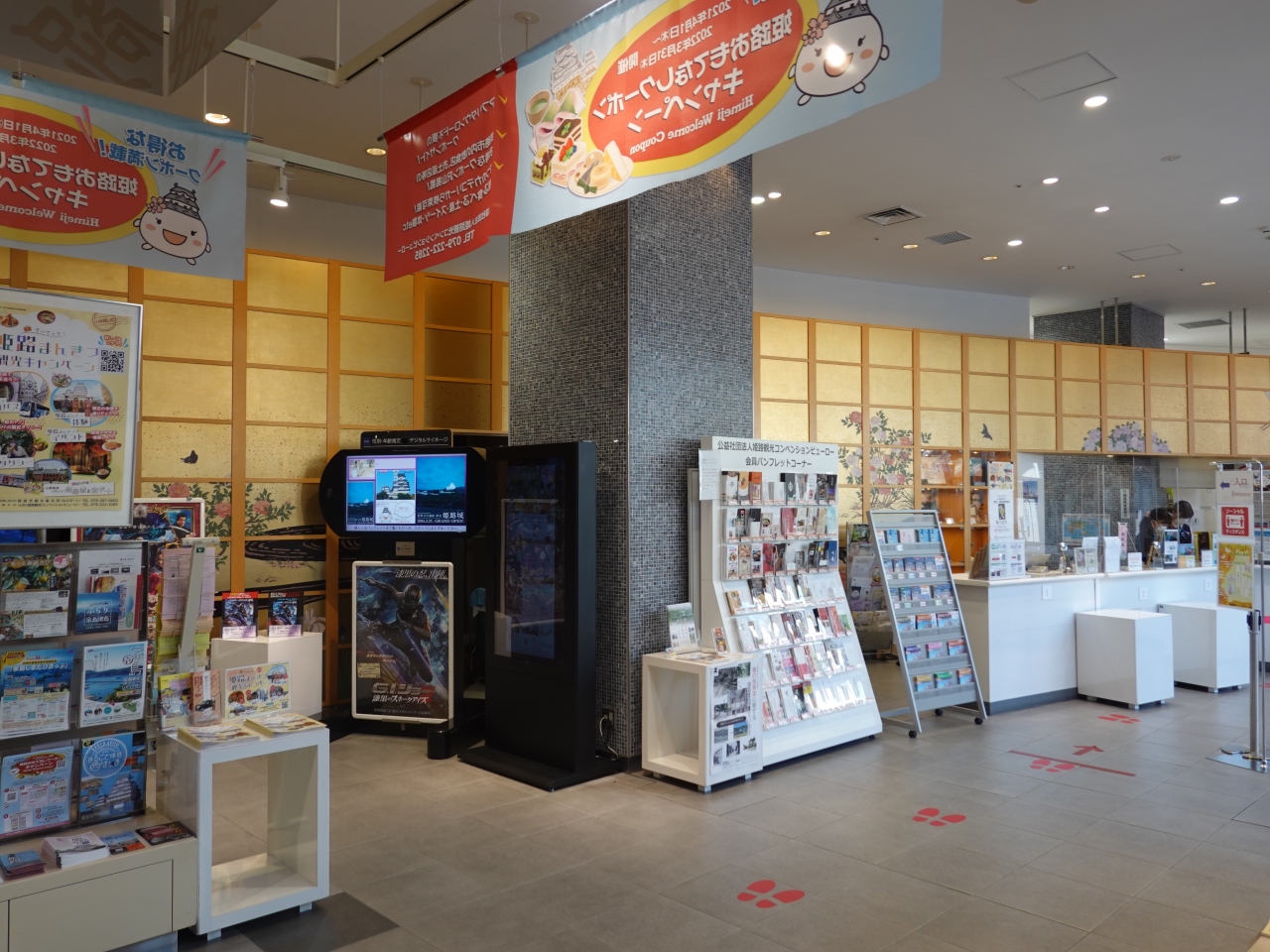 「姫路観光なびポート」の愛称がある姫路市観光案内所は、JR姫路駅中央コンコースの一画という分かりやすい場所にあります。観光情報が充実しており、スタッフも駐在しています。朝は8時半オープンと比較的早いのですが、終業時間も早く、食事前に通った時は閉じられていました。コロナ対応で営業終了を繰り上げているのかも知れません。