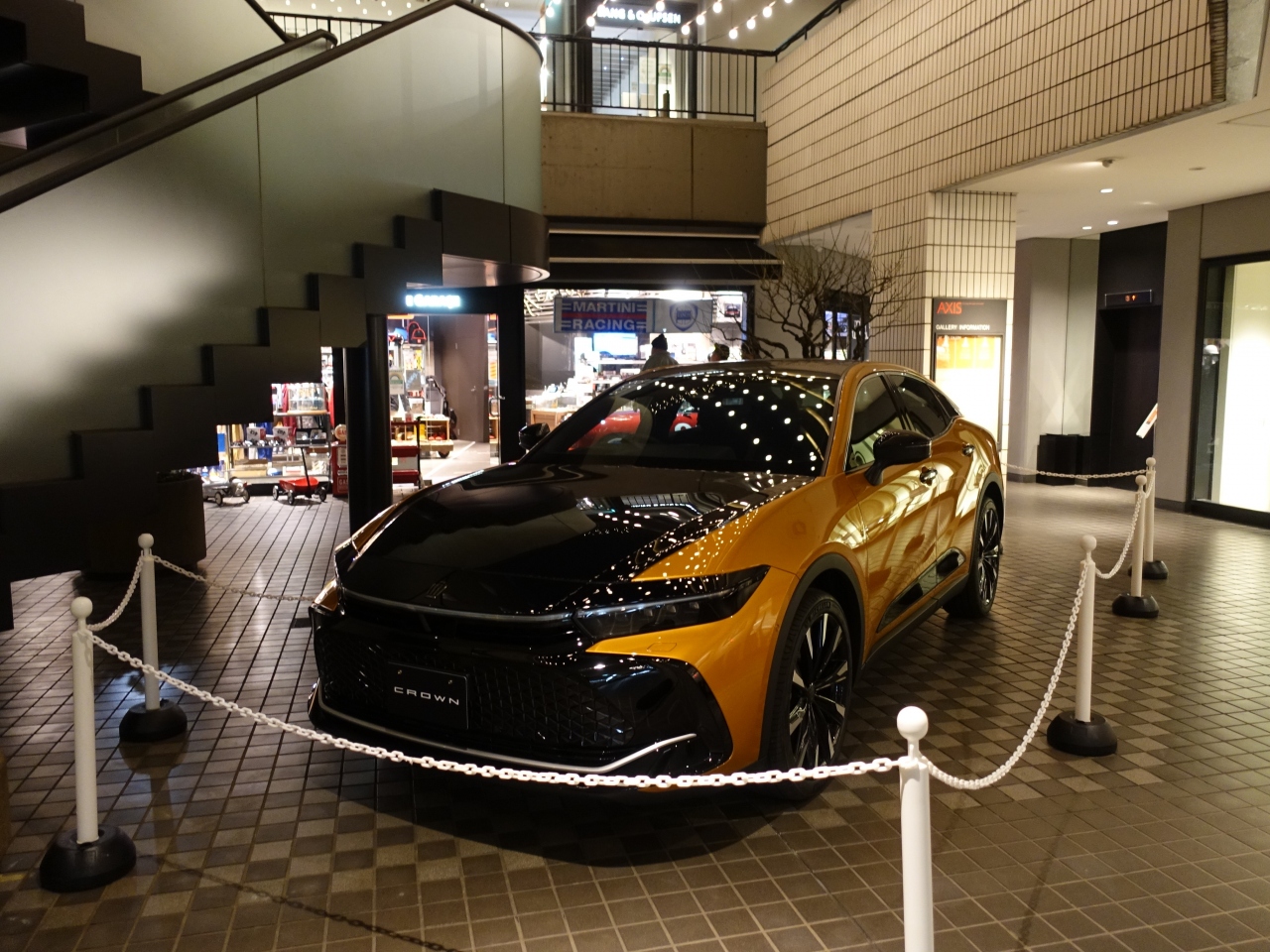 飯倉片町の交差点から外苑東通りをワンブロック六本木方面に進んだ左手にあるビルです。近隣の飲食店で夕食を採った際に立ち寄ってみました。1階の店舗はガラス張りのお店が多く、周囲が暗くなると照明によって店内が目立ちます。1階の中央にはトヨタ・クラウンの新型車両の展示もありました。近くを通りかかった際は立ち寄ってみたくなる商業施設です。