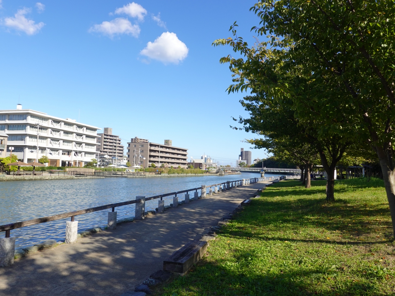 助任川は、徳島中央公園の北側に沿うように東西に流れる一級河川です。川沿いには散策路が設けられていて、私たちは中央公園観光後に歩きましたが、右手に公園の緑を、左手に川を眺めながらの散策はとても気持ちが良かったです。