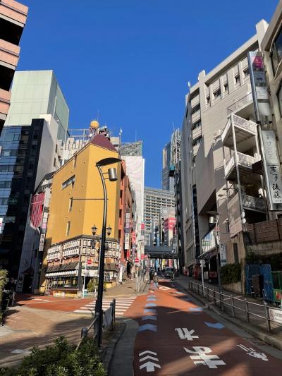 朝の通勤時間帯に芋洗坂を通りました。通勤客が通るコースではないため、人の姿はまばらで車もあまり通りません。1月の快晴の日で、坂下から坂上を見ると、ビルの合間に抜けるような青空が広がり、気持ちを高めてくれます。青空の脇に見える「東京ミッドタウン」の姿も印象的です。