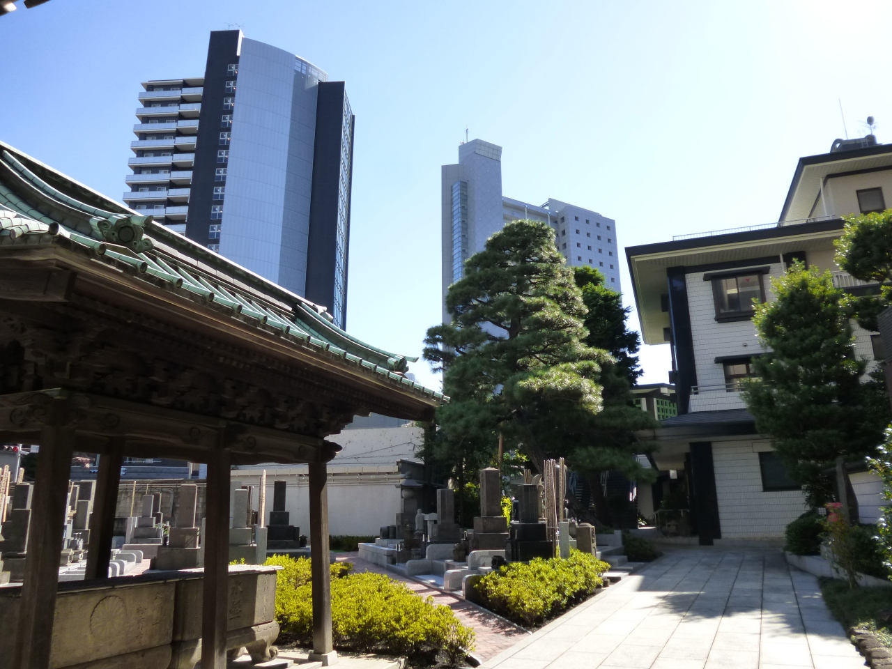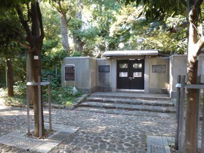 「大石良雄ほか16人忠烈の跡」は、都内に残る赤穂事件にまつわる旧跡のひとつで、大石内蔵助良雄を含む17名が切腹をした場所です。普段は中に入ることは出来ず、扉は固く閉ざされています。扉の向うには色濃い緑の葉をたたえた木々が茂り、都心とは思えない光景でした。まさにここが史実に残る場所であることを感じました。