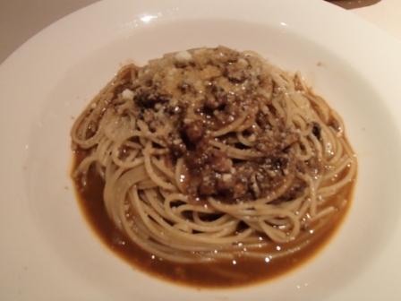 「牛スジの赤ワインソーススパゲティ」という言葉からは、料理のイメージが沸かなかったのですが、確かに初めて食べる味わいのパスタ料理でした。