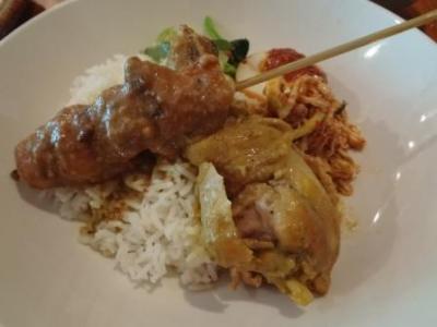 輸入米の上に、サテーをはじめとするインドネシア料理のおかずが乗って出てくる丼のような一品です。インドネシア特有のピーナッツソースをメインに使った品々は日本人の口に合い美味しいです。