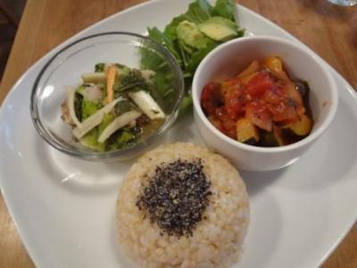 「チリコンカン」「スープボウル」「ベジタブルカレー」などのメニューもあったのですが、初訪問という事もあり、オーソドックスに玄米とお惣菜3品のセット(1200円)を選択。