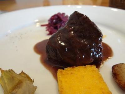 時間をかけて煮込まれていて非常に柔らかいのですが、思ったほど赤ワインが効いておらず、薄めの味付けだと感じました。