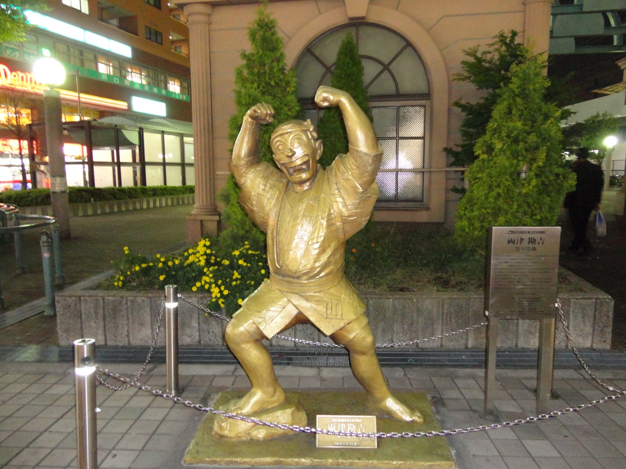 JR亀有口を降りて南口を出ると交番があります。そのすぐ近くに「両津勘吉像」が建っています。