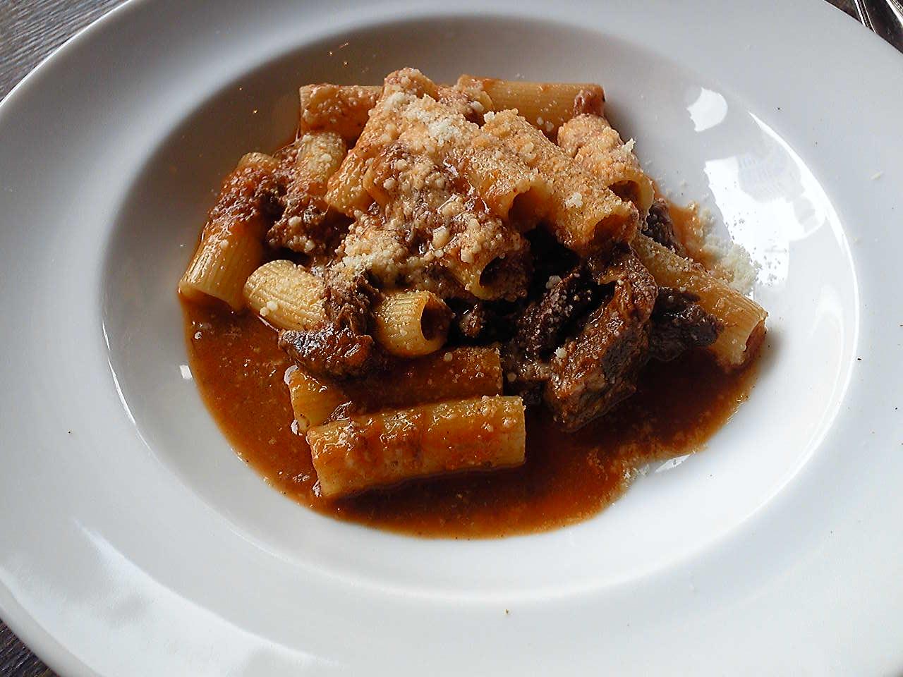 パスタはラグーソースのリガトーニを、メインはスズキのポワレをいただきました。