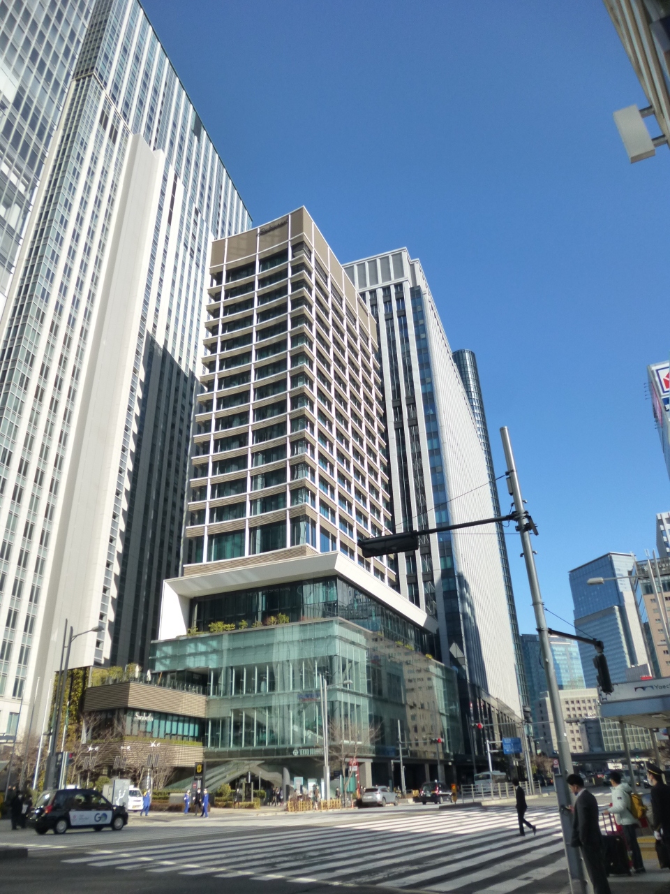 大手町野村ビルは、都道402号線と永代通りが交わる交差点の北東側にあります。1932年に竣工した7階建てビルのファサードや時計台を保存した27階建ての高層ビルです。高層ビルの北側にはガラス張りのアトリウムスペースがあり、夜間はとても目立っていました。昼と夜では違う美しさを感じるビルでした。