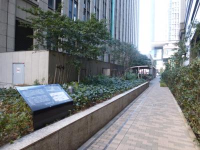 外国人観光客の入国規制が緩和され、東京駅周辺は大勢の人で賑わっていましたが、北町奉行所跡の周りはほぼ無人状態でした。二つのオフィスビルに挟まれたエリアで、通行するのは主にこれらのビルで働く人たちだと思います。スタイリッシュな案内板が設置されているだけのシンプルな史跡なのが少し残念です。