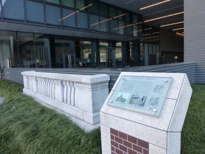 かつて「東京銀行協会ビル」があった場所に足を運んでみました。かつての趣のあるビルは建て替えられ、現在は2020年に竣工した新しいビルになっています。以前のビルに使われていたレンガの一部と、2階バルコニーの手すりが残されており、案内板とともに史跡になっています。雰囲気のあるビルがなくなったのは残念に思う一方で、史跡だけでも残ってよかったと感じました。