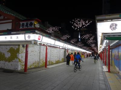 昼間は多くの人で賑わう仲見世ですが、お店が営業を終えると人通りは一挙に少なくなります。浅草で夕食を終えたあとの楽しみが夜の仲見世散策です。閉じられたシャッターにはそれぞれのお店が趣向を凝らした絵が描かれており、昼間とは全く違う楽しさがあります。