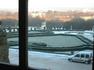 宮殿庭園の様子。噴水はガチガチに凍り、あちらこちらに雪が残っておりまし...