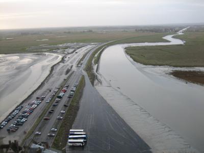 早朝のモンサンミッシェル、その2。これはバス乗り場付近です。
