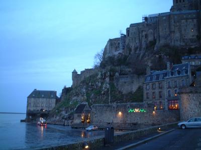 早朝のモンサンミッシェル。まだ人影もなく、独り占めの気分。ちょっとピン...