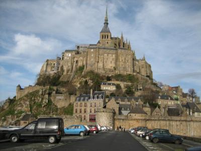 青空に映えるモンサンミッシェル。パリへ戻る直前に撮影しました。てっぺん...