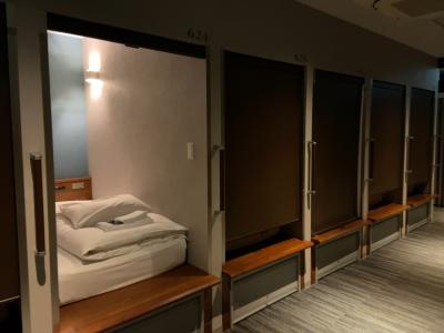 カプセルタイプの部屋かなと思いましたが、二層式になっていないのでキャビン内で立ち上がることができるほどの余裕があったほか、貴重品ボックスも枕元にあるので安心。荷物などは各キャビンの下に収納する形となりますが、高さがあまりないのでキャリーケースなどは入れることができない点については注意が必要かもしれません。- 旅行時期