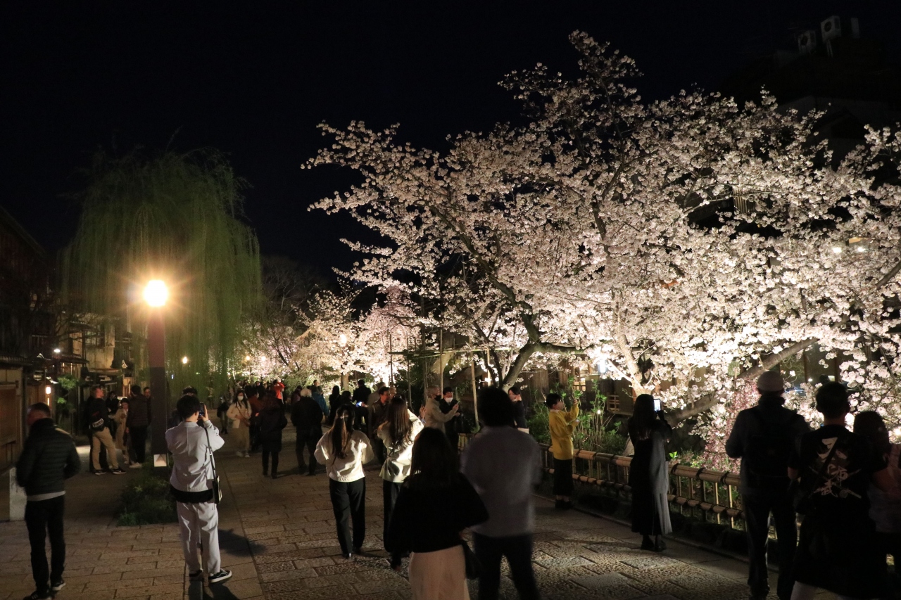 朝方にも歩いてみましたが、やはり情緒があるのは夕暮れ以降かなと感じさせられる場所です。ライトアップされている桜と垂れ柳の組み合わせは周囲の景色も相まって京都を表現しているといっても過言ではないかと。そんな場所ということもあり日本人/外国人問わず観光客が多くて雰囲気が台無しだと感じる人もいそうですが、(多すぎてごった返しているのは別として)そうした人の流れがあるのもまた情緒があって良いのかな~と感じるところです。周辺にお手洗いなどはないので気になる方は事前に済ませておくのが得策と言えそう。