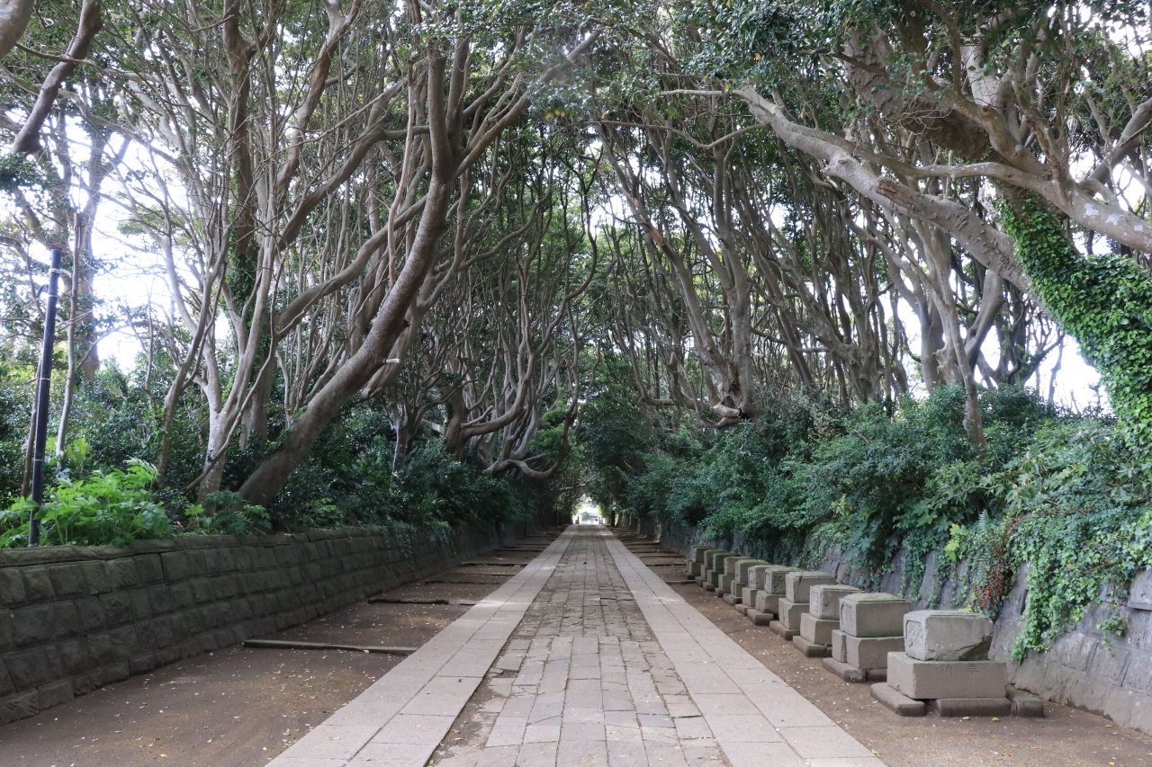 木々や広葉樹による長いトンネルが出来上がっており、遠くから見るとどこか違う場所へタイムスリップしたのではないかと錯覚しそうになります。中央にはタイルが敷かれているので歩きやすくその点では安心して訪問できそう。平日だったこともあり参拝客は少なく駐車場へもスムーズに出入りすることができました。誘導員がおり狭い道でも鉢合わせしないように配慮してくれているのはありがたいところ。酒列磯前神社は幸運の亀で知られており金運上昇などのご利益があるとか。時間に余裕をもってゆkkるちお参りしたいところです。