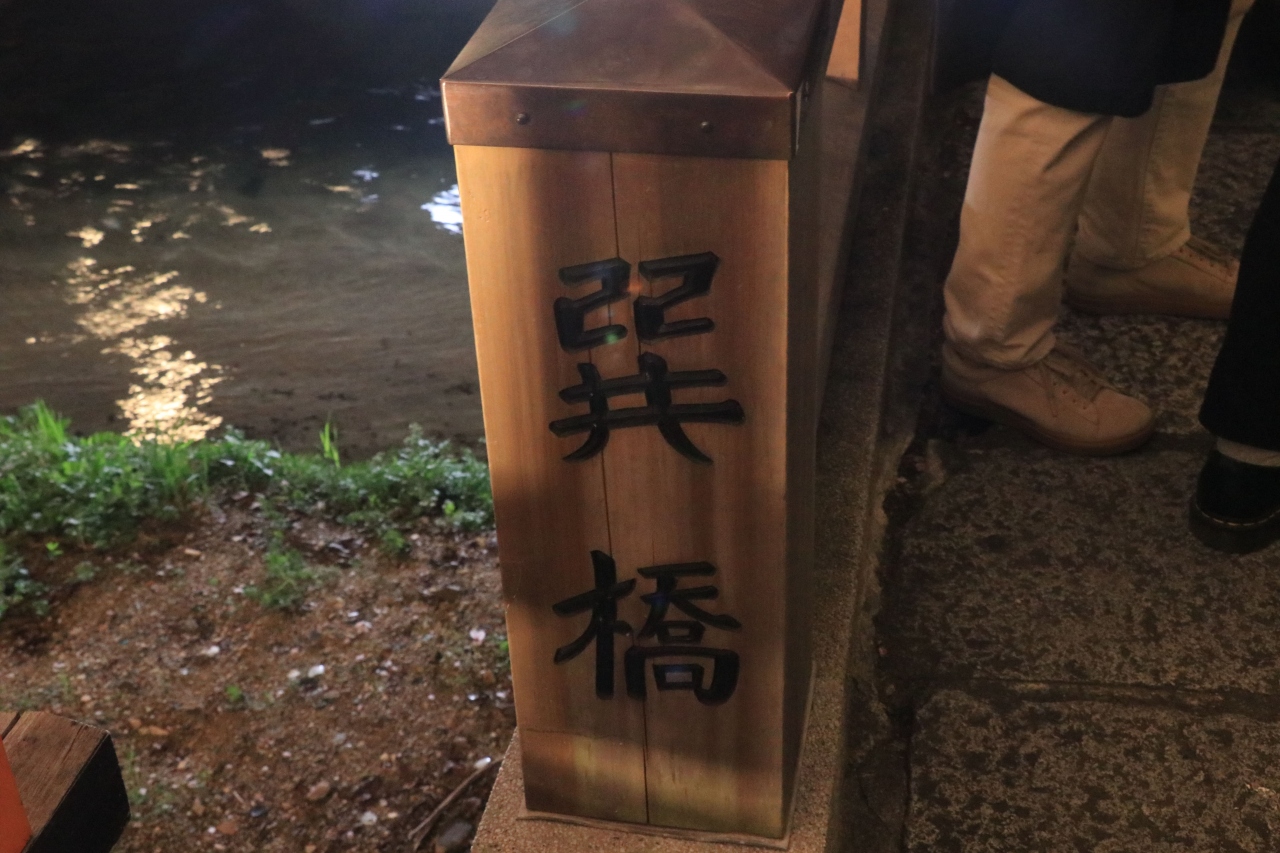 昼間の橋から眺める鴨川の景色は、河岸でのんびりしているカップルやグループなどテレビでよく流れそうなものが広がっていますが、陽が沈んでからも意外とそうした面々はいるようです。電灯などがないので薄暗い中ではありますが、なかなか粋なものを感じます。ゆっくりと眺めたい場所ではありますが、歩行者も通行量が非常に多い場所で写真撮影なども含めて邪魔にならないように配慮は必要かと。(する人はいないと思いますが)車道への路駐も厳禁!