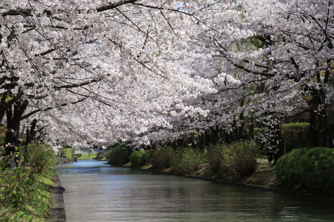 両岸に柳や桜の木が植えられておりシーズンになると非常に綺麗な景色を見せてくれます。風が無ければ桜などが川面に反射したリフレクションが楽しめるほか、河岸が整備されているので先述のシーズン中は日本人/外国人問わず多くの人で賑わいを見せます。川を進む小舟の写真を撮るためにギリギリの場所でシャッターチャンスを狙っている人が多くいますが、土手部分は舗装されていないので(川面からの波もあり)水分を含んで滑りやすくなっていました。川に落ちないように細心の注意が必要です。