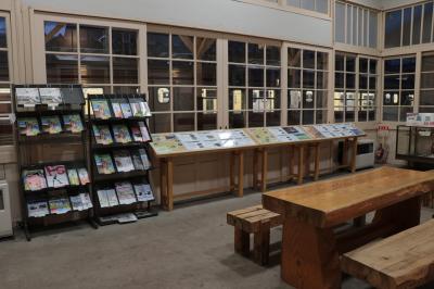 建物内には椅子が設置されている他、湯田中や近隣観光地の説明などがあります。時間があえばガラス越しに長野電鉄の到着や出発していく姿が見えます。すぐ隣には温泉もあり、列車の待ち時間にちょうど良いのではないのでしょうか。