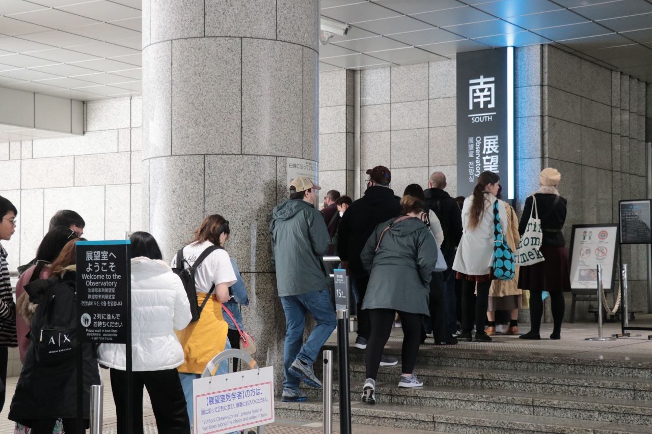 付近に立ち寄る用事があり、無料だし・・・ということで向かいましたが、なぜだか分からないものの入場するのに30分ほど時間がかかりました。南北2つの展望室があるのですが、北側はワクチン接種会場となっており一般開放は南側のみだったのが混雑の原因だと思われますが、だとしても異様な混み方だったなぁと思うところ。列の途中には入場までの目安時間が掲出されていたのでそれらを参考にして利用するのも良さそうです。