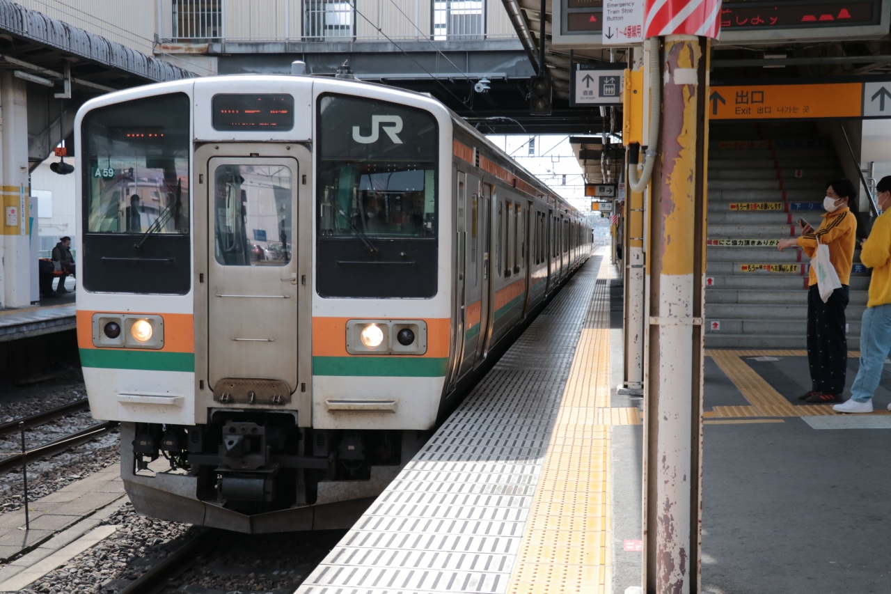 今回利用したのは高崎→小山。列車によって両数が異なるようで駅の電光掲示板や時刻表、足元の乗車位置案内はしっかりと確認しておくのがオススメです。乗車したのが青春18きっぷのシーズンだったことから高崎・前橋エリアは混雑しており席に座れず立ったままとなっている人の姿も。混んでいるのはせいぜい伊勢崎暗いかなと思っており結果的に当たってはいましたが、栃木からは下校途中の学生を中心に車内は再度混雑。全て乗り通すと1時間40分とかなりの乗車時間になりますが、乗車人員を多くすることができるロングシートという設定はあながち間違えではないのかもしれません。