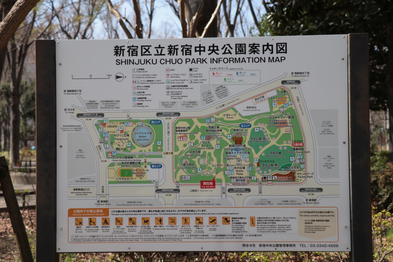 近隣住民は多くは無さそうですが、散歩をする人・子供と遊ぶ人など利用者は一定数いる模様。公園には駐車場がないのでアクセスはバスなどをはじめとした公共交通機関の利用がベター。近くには都庁もあるので展望台などと合わせての訪問も良いかもしれません。